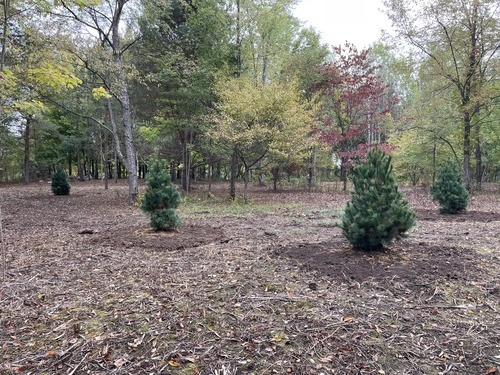 It has been a busy few weeks on New Day Nature Trails! Today we planted 20 new trees in the south section of the property! There are 10 new White Pine Trees and 10 new White Oak Trees! No saplings this time guys! The pines come to about five feet tall and the oaks stand over 10 feet tall! Check out the pictures below…