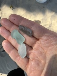I was at a Lake Michigan beach the other day after a storm had come through. Numerous rocks had washed up along the shoreline. I started searching for the precious treasures. There was a couple in front of me and they were also combing the rocks for interesting finds. I wondered if I should try to get ahead of them; however, as I slowed down, I was able to discover numerous pieces of beach glass.